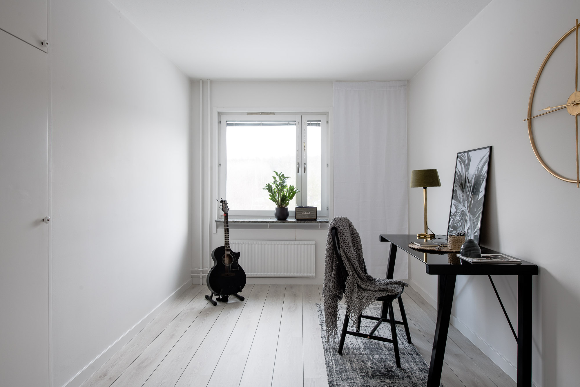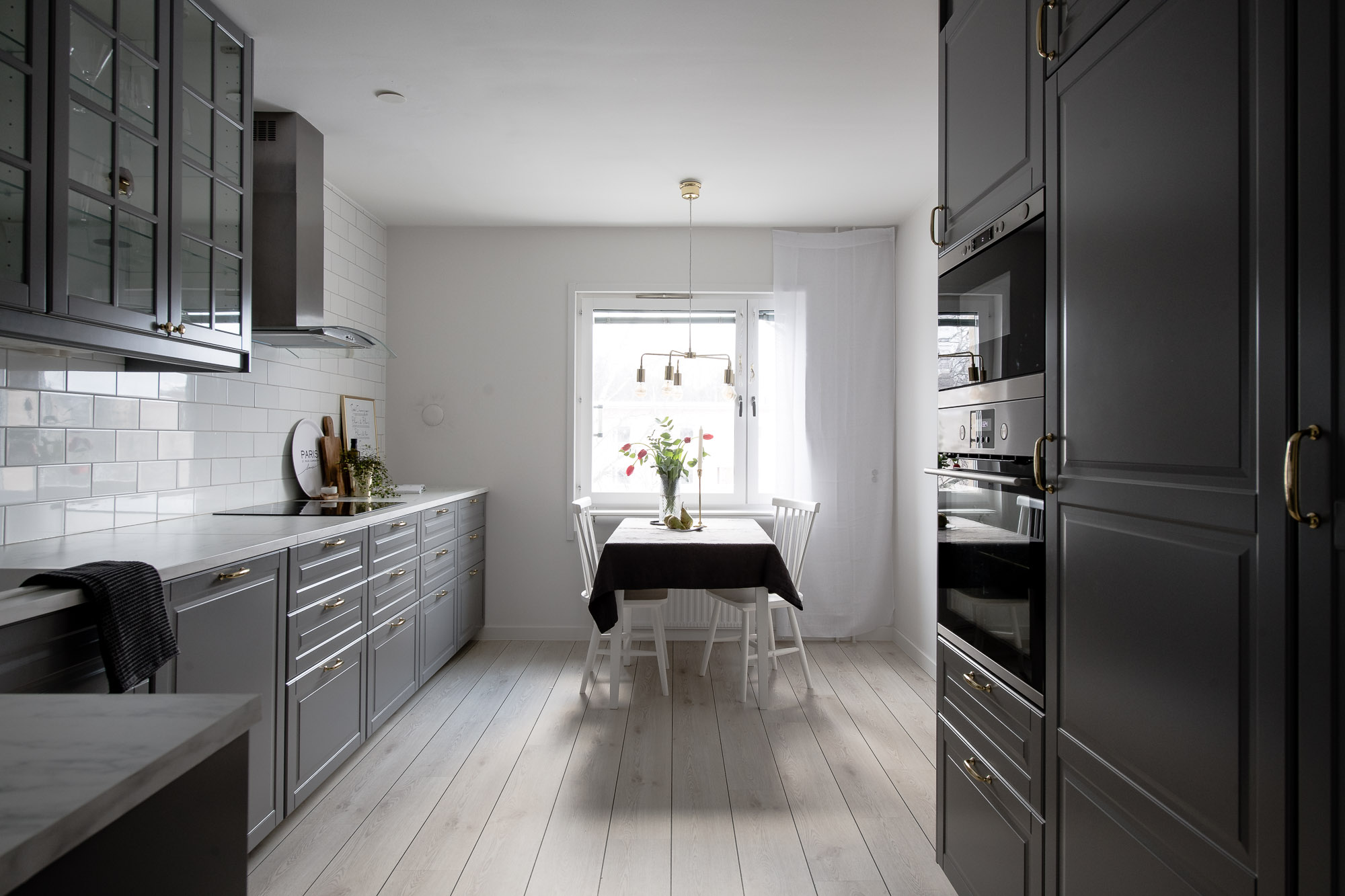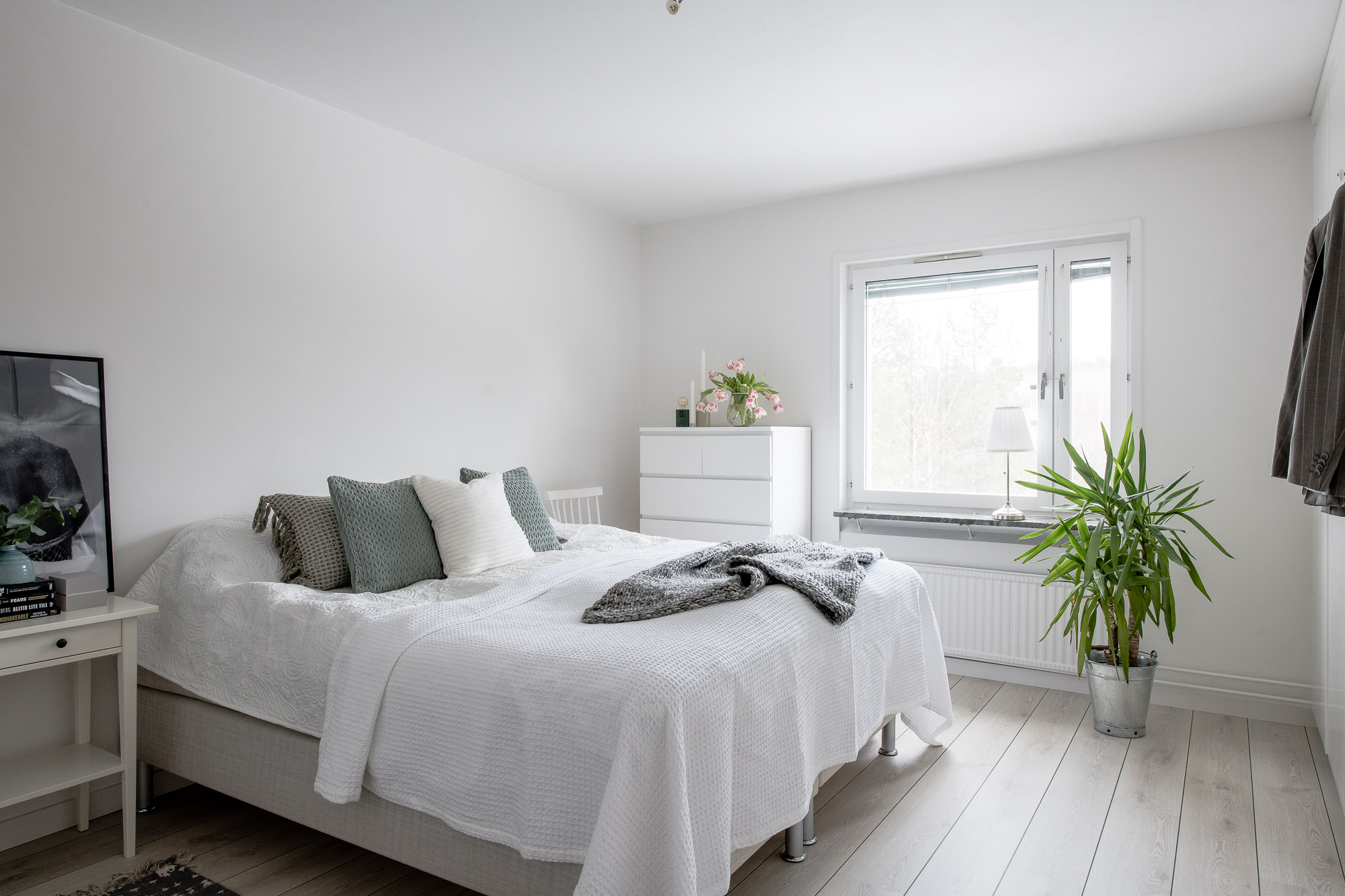 En tom lägenhet, som fått lite möbler och blommor i sig. Ganska enkla medel gör det riktigt hemtrevligt.